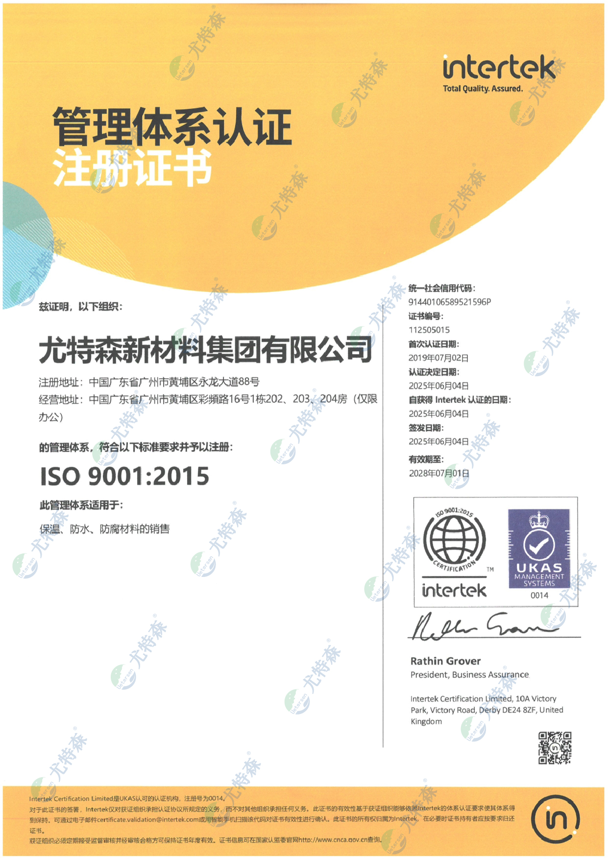 尤特森新材料集團有限公司是一家集保溫材料及復合材料的研發、生產和銷售為一體的綜合型企業,旗下擁有UETERSEN尤特森和UK尤科新材等多個品牌。